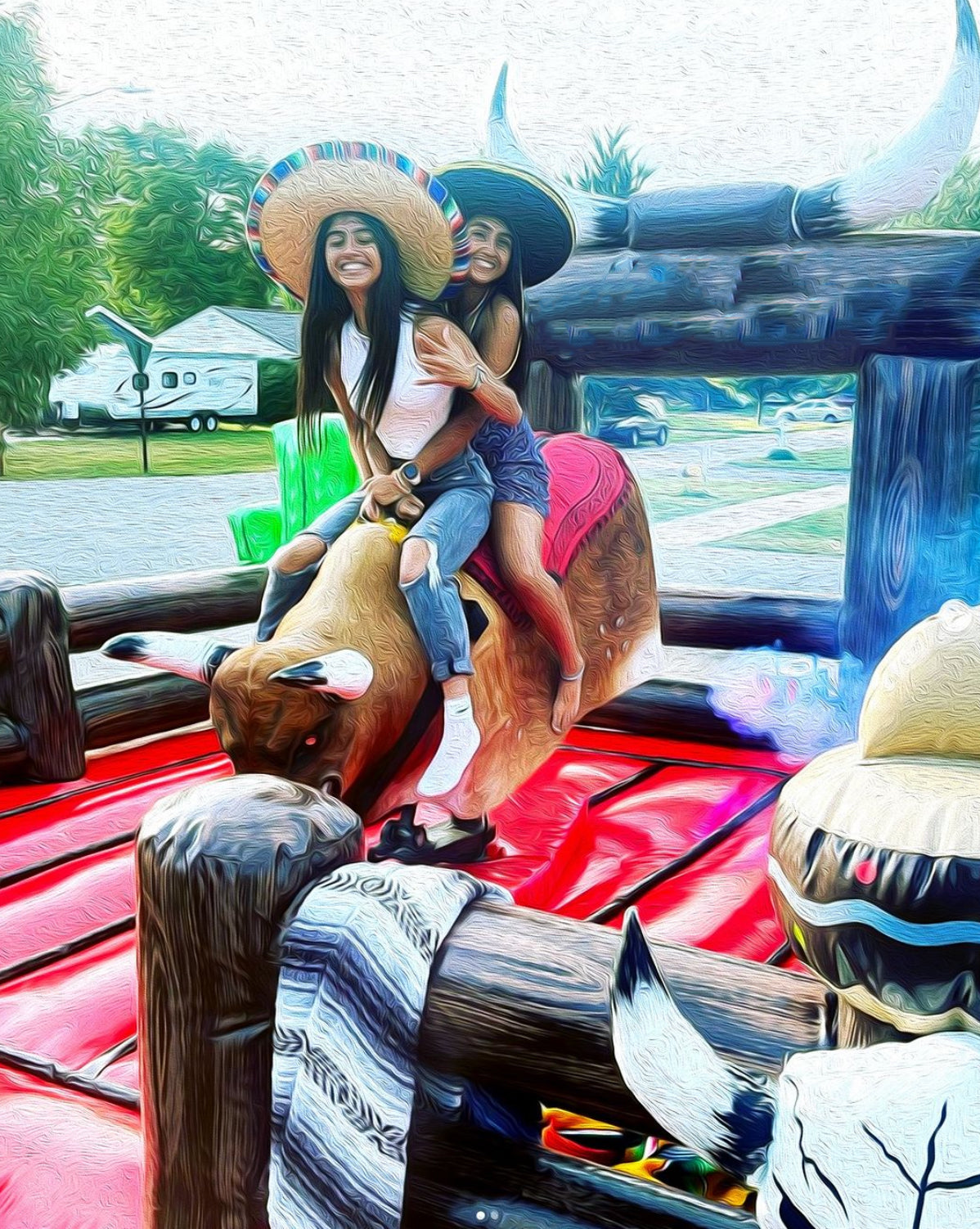 The mechanical bull was the highlight of our college graduation party