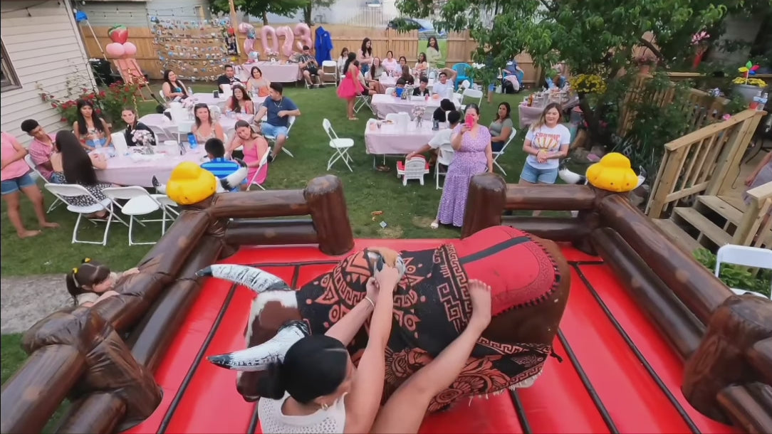 - 📏 Space: A minimum area of 18ft x 18ft is needed to safely accommodate the mechanical bull and its safety matting.